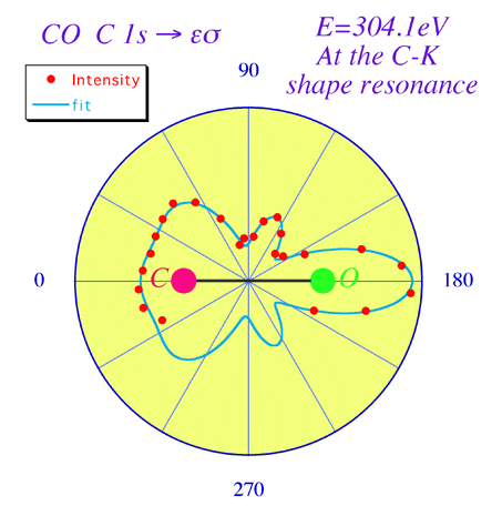 C1s→σ*形状共鳴における配向したCO分子からの光電子の角度分布。