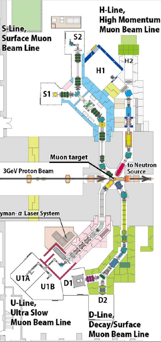 (次図はMLFミュオン科学研究施設の実験エリア配置)